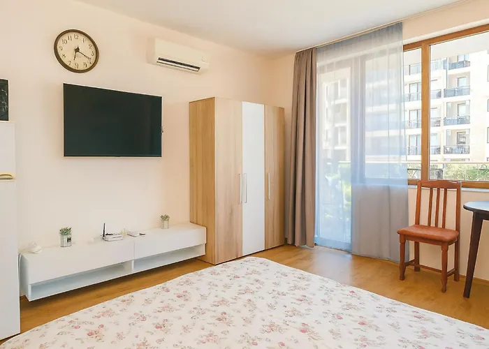 La cocinilla bien aprovisionada, equipada сon servicio de tetera/cafetera y un hervidor eléctrico, una nevera y una tostadora, es perfecta para preparar comidas. Los huéspedes también pueden tomar un autobús en la estación de autobuses Kontinental, situada a aproximadamente 10 minutos a pie, para explorar Sunny Beach. Los huéspedes podrán disfrutar de lujosos servicios, como parque acuático y terraza solárium.